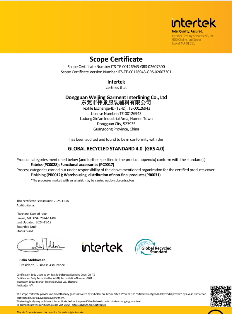 GRS全球回收标准4.0证书